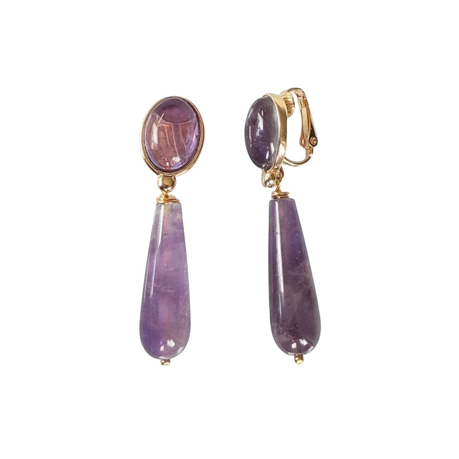 Amethyst Ohrclips Chiara ohne Anhänger getragen, elegant und komfortabel ohne Ohrlöcher