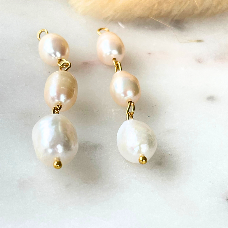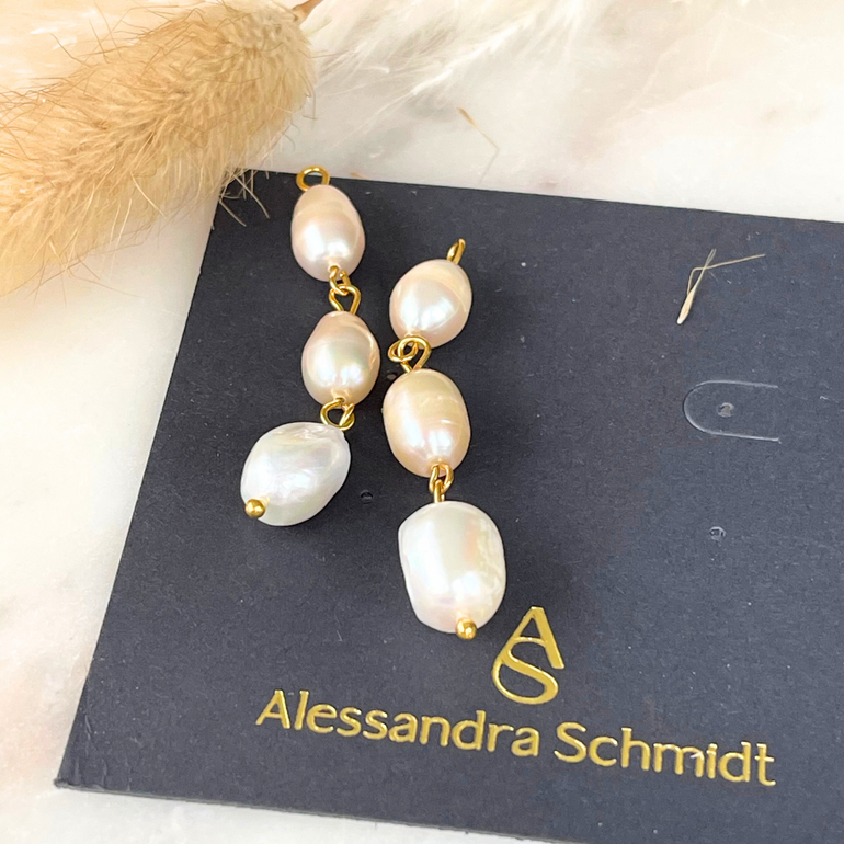 Verleihe Deinem Look pure Eleganz und feminine Leichtigkeit: Drei Süßwasserperlen in sanften Naturtönen fangen das Licht sanft ein und passen wunderbar zu luftigen Kleidern, Leinenblusen oder einem klassischen Rollkragen. Ob im Alltag, bei einer Sommerparty oder einem entspannten Lunch-Date – dieser Anhänger sorgt für stilvolle Natürlichkeit.