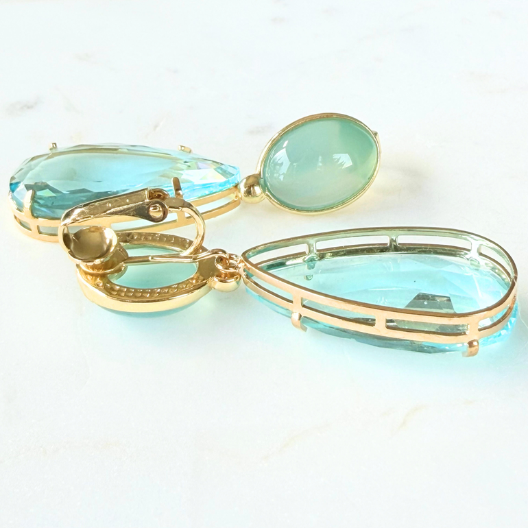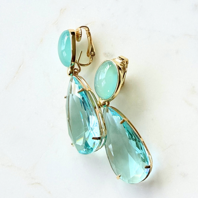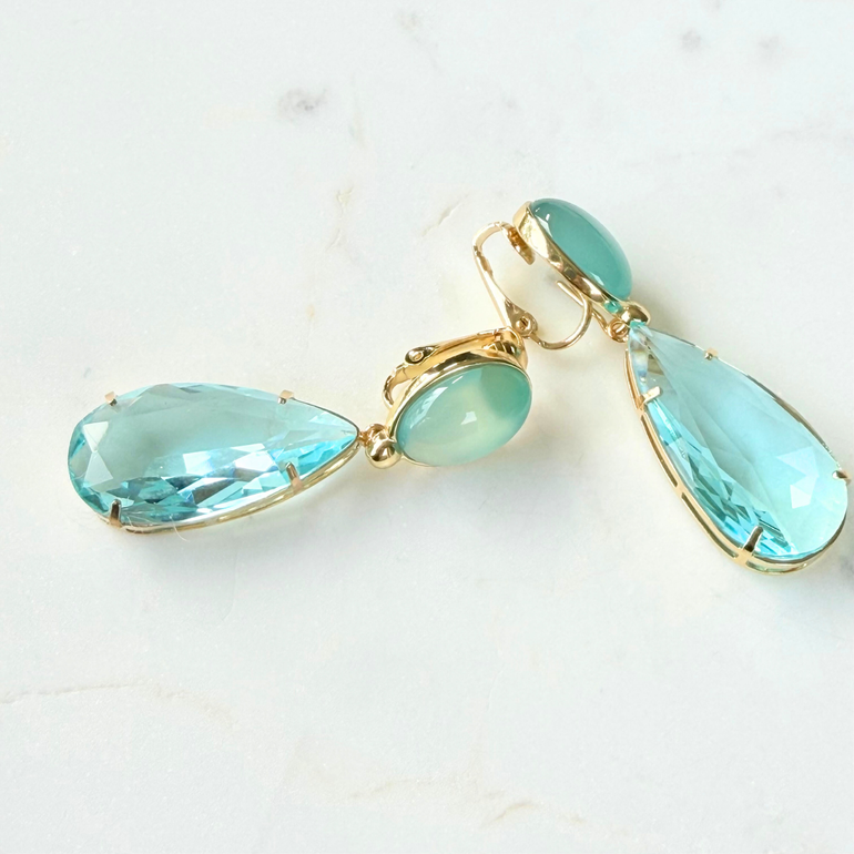 Arielle Ohrclips Himmelblauer Quarz mit Kristalltropfen