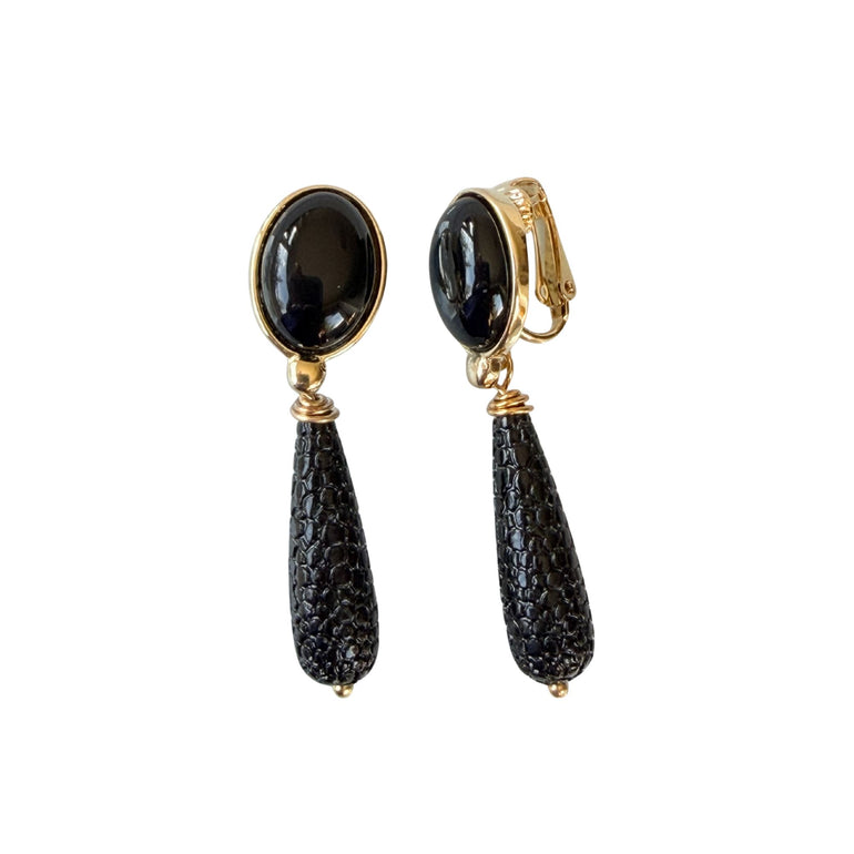 Clip Ohrringe ADELIE mit schwarzem Achat und Tropfenanhänger