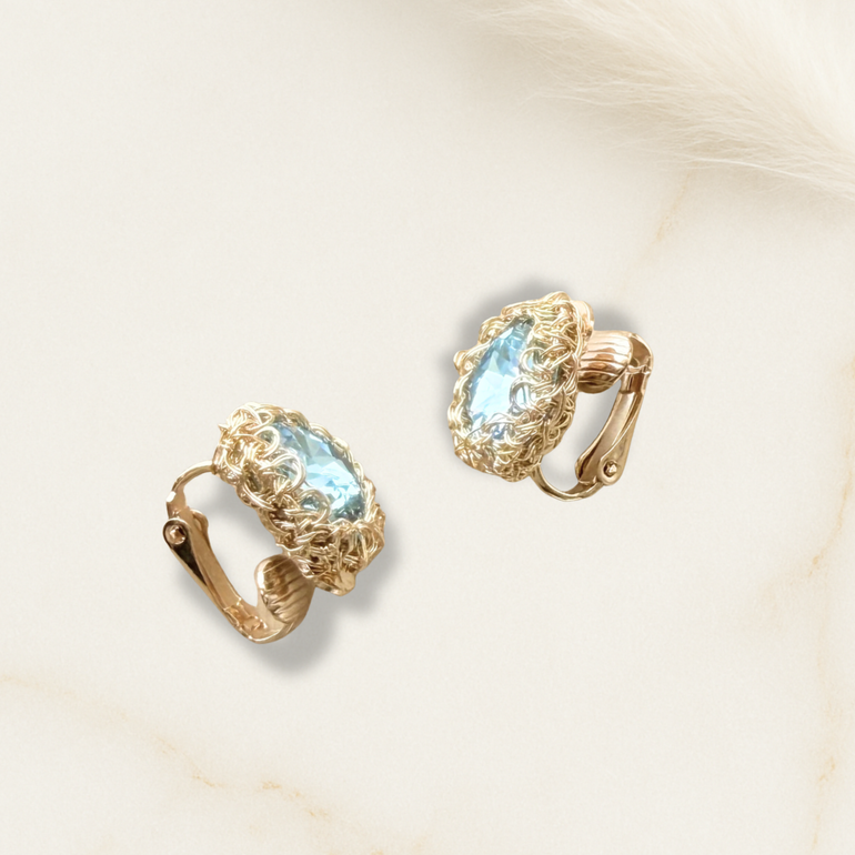 Clip-Ohrringe VERA mit hellblauem Kristall, handgefertigt & komfortabel