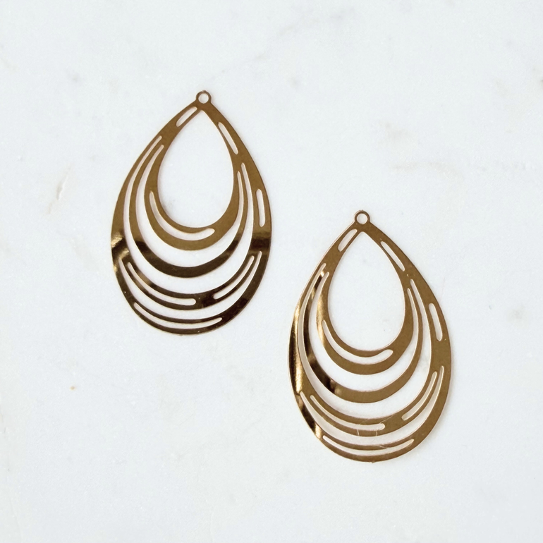 Leichtgewichtige Anhänger aus goldfarben vergoldetem Edelstahl in moderner, grafisch ausgearbeiteter Tropfenform. Die sanft geschwungenen, offenen Linien verleihen Deinen Wechselsystem Ohrringen eine elegante, zeitgemäße Leichtigkeit. Ein dezenter und zugleich ausdrucksvoller Akzent, perfekt für mühelose, moderne Looks.