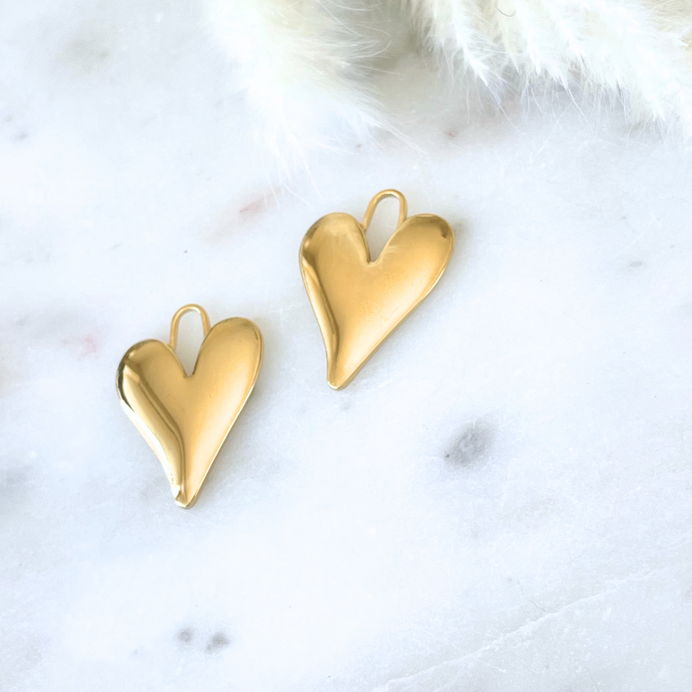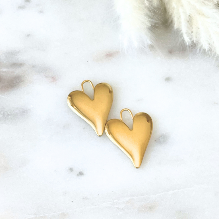 Herz Anhänger vergoldet 3 cm aus Edelstahl für Wechselsystem Ohrringe