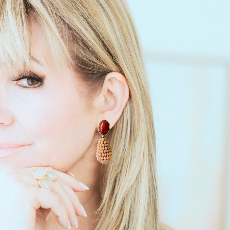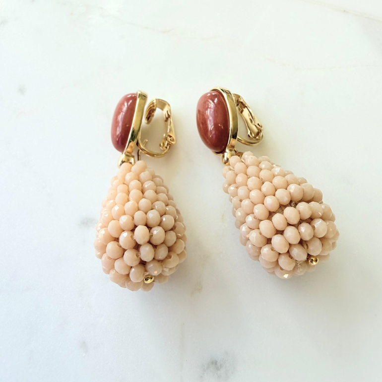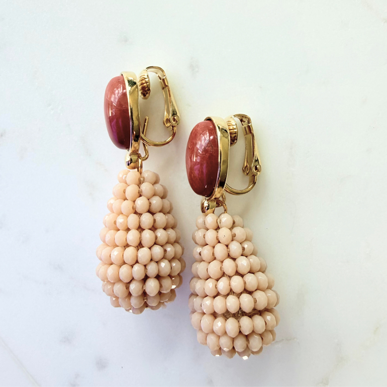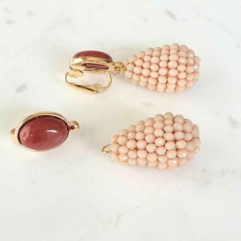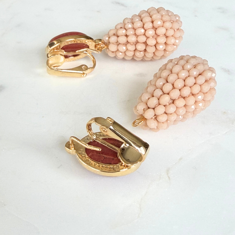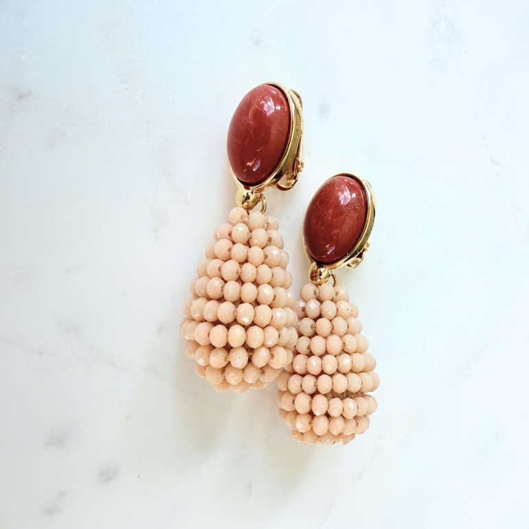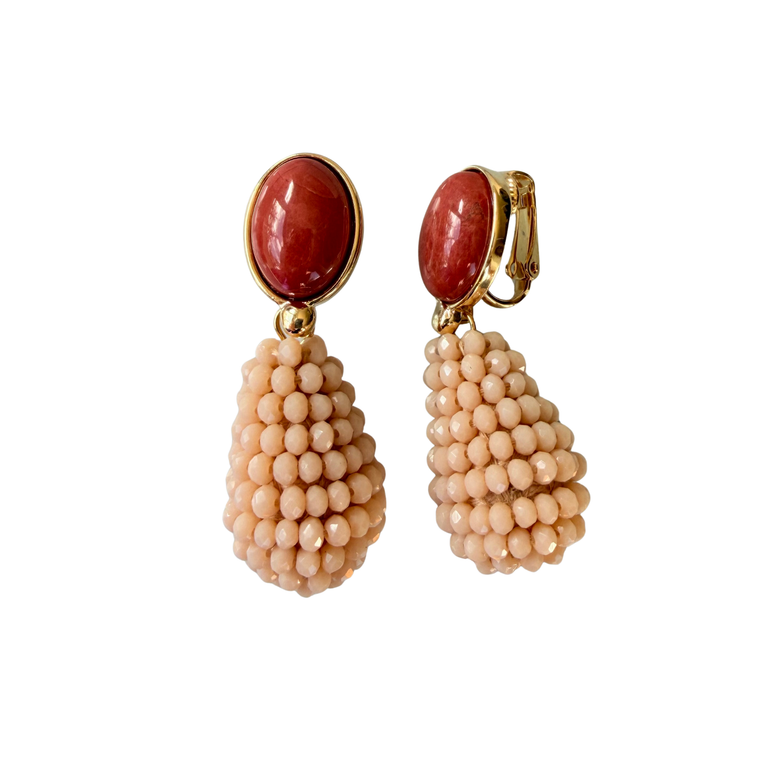 Clip-Ohrringe in Korallen-Howlith – Bequem, Eleganz und natürliche Steine 'CHARLOTTE'