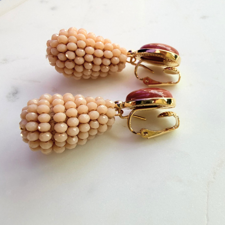 Der handgefertigte Clipverschluss sorgt für sicheren Halt und angenehmen Tragekomfort – auch ohne Ohrlöcher.