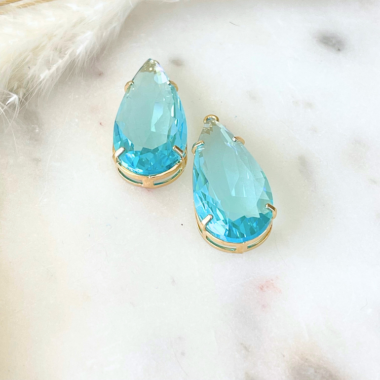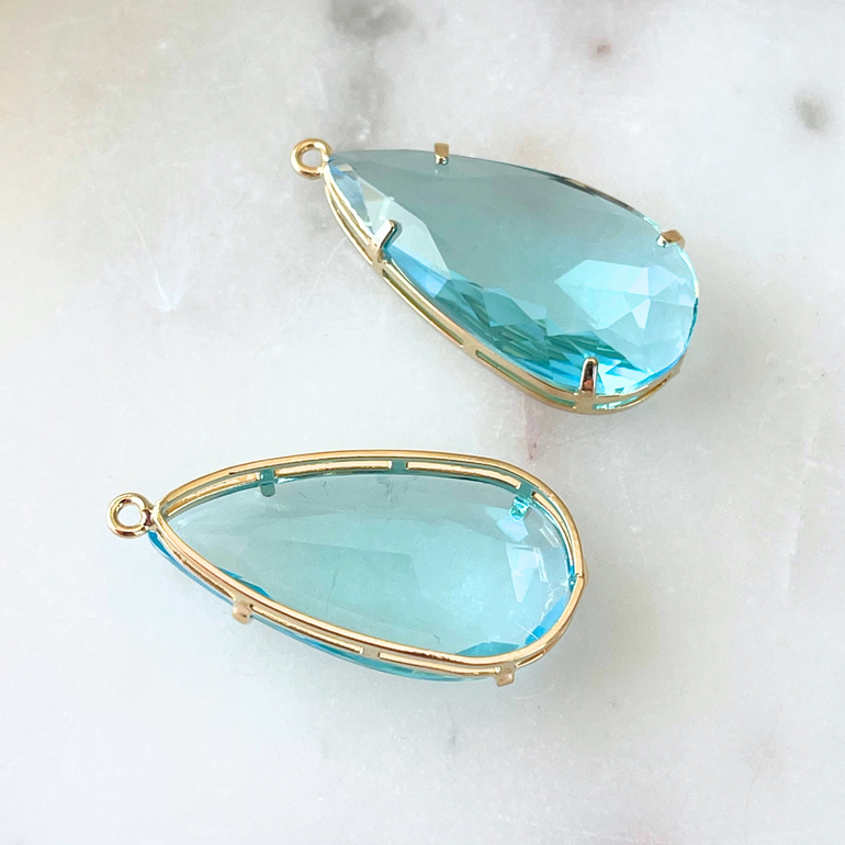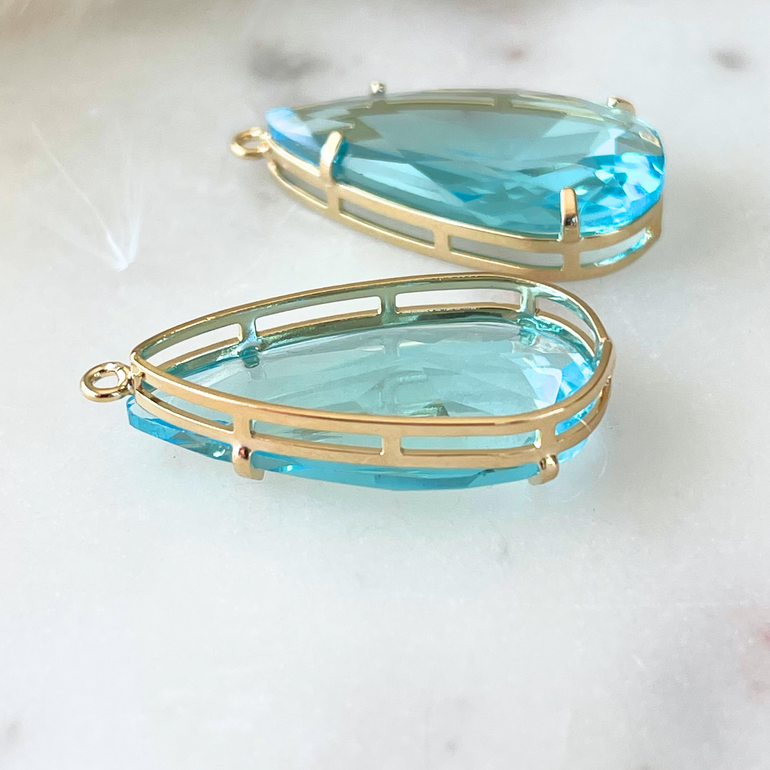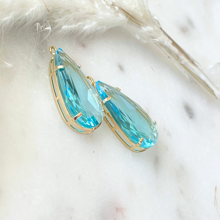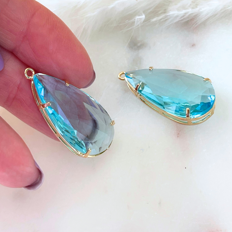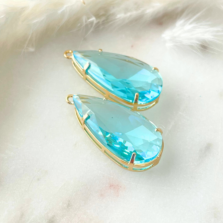 Kristall-Anhänger in Aquablau – Tropfenform für Wechselsystem-Ohrringe – elegant, facettiert & vergoldet