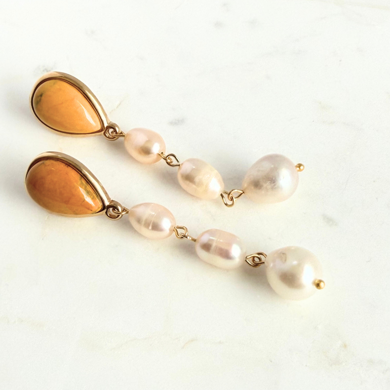 Ohrringe CLAUDIA mit gelber Howlith und Süßwasserperlen