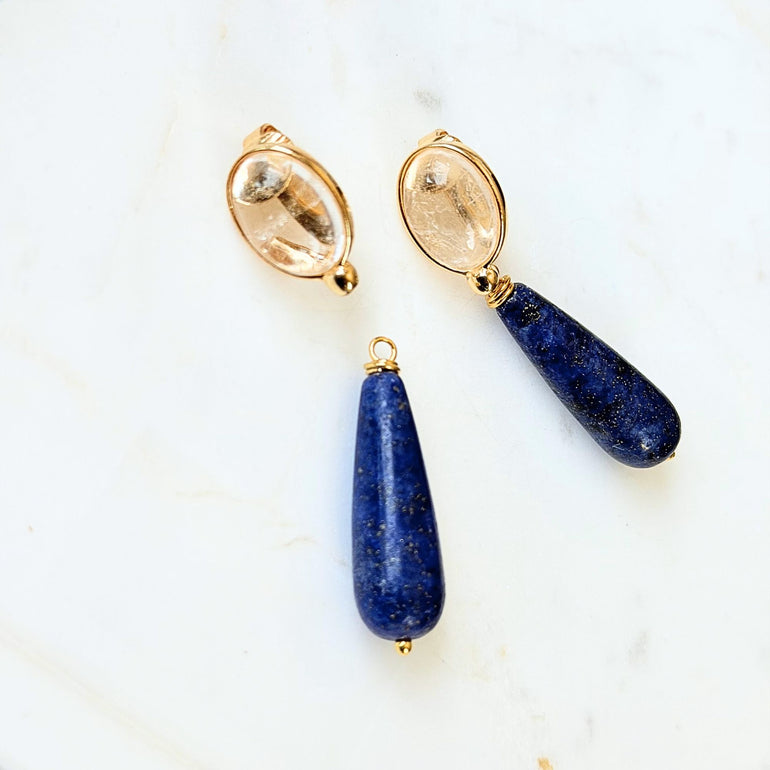 Clip Ohrringe Marine mit Bergkristall und Lapislazuli