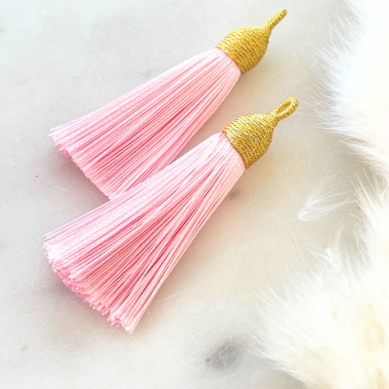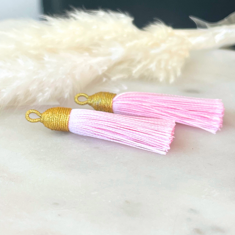 Anhänger Quaste aus rosa Baumwolle. Für Wechselsystem-Ohrringe geeignet