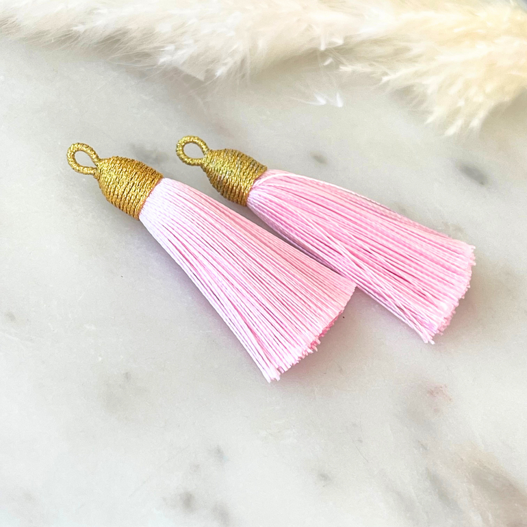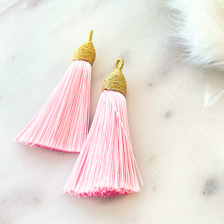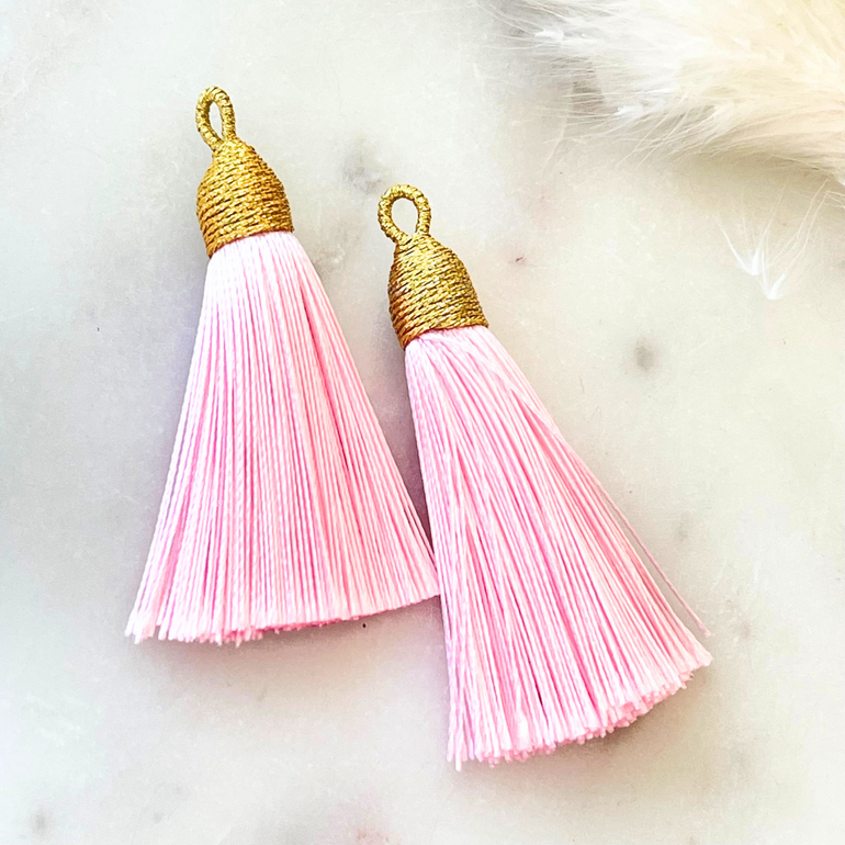 Dieser federleichte Quastenanhänger in zartem Rosa bringt eine frische, verspielte Note in Deinen Look. Gefertigt aus feiner Baumwolle und vollendet mit einem goldfarbenen Abschluss, schwingt er sanft bei jeder Bewegung und verleiht Deinem Outfit einen Hauch von Sommerlaune.
