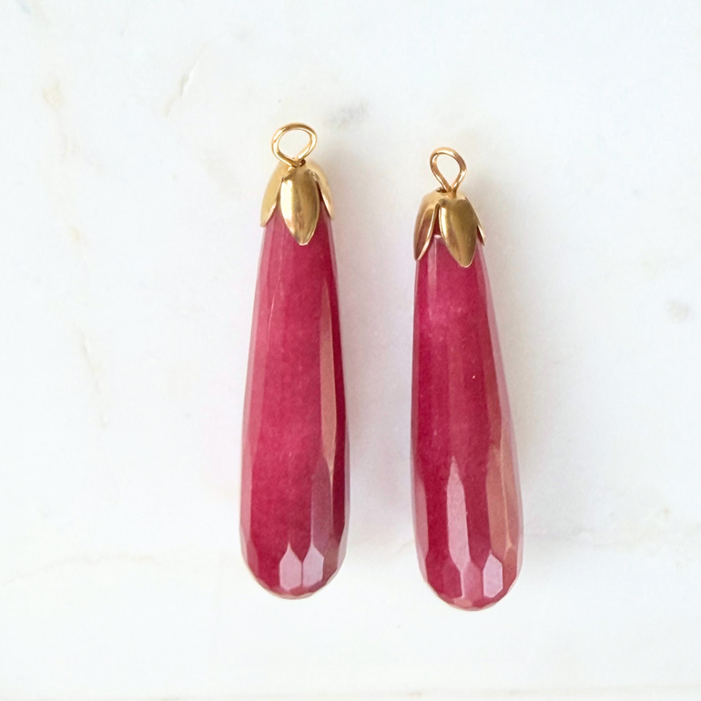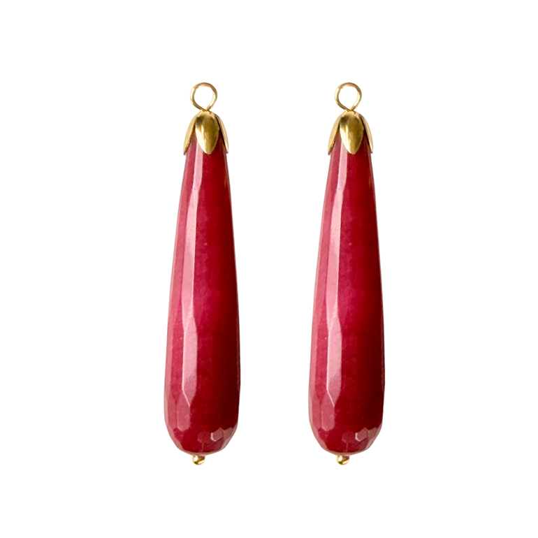 Facettierte Rubellit Anhänger in intensivem Pinkrot, handgearbeitet in einer klaren, verlängerten Tropfenform. Das lebendige Farbspiel dieser Natursteine bringt Tiefe, Wärme und eine moderne, feminine Ausstrahlung in Deine Wechselsystem Ohrringe.