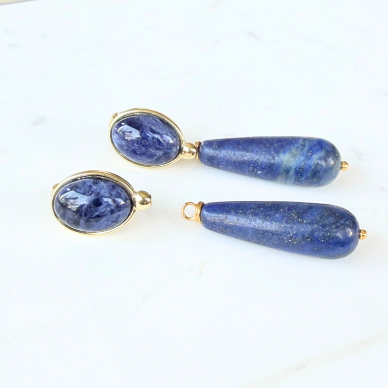Wenn CHIARA zur ÉLISE wird, entsteht eine tiefe, elegante Verbindung aus strukturiertem Sodalith und einem intensivblauen Lapislazuli Tropfen.