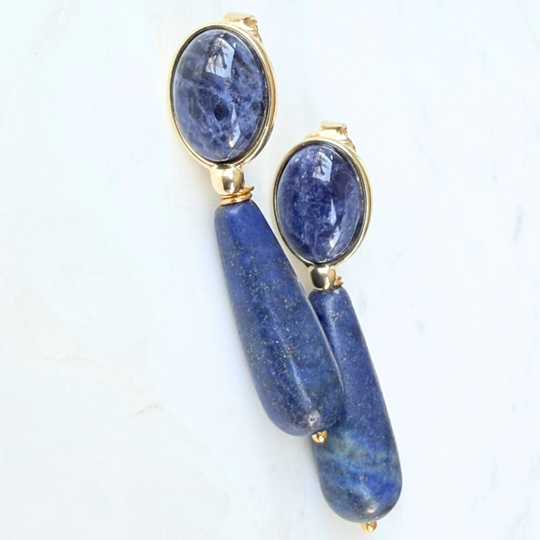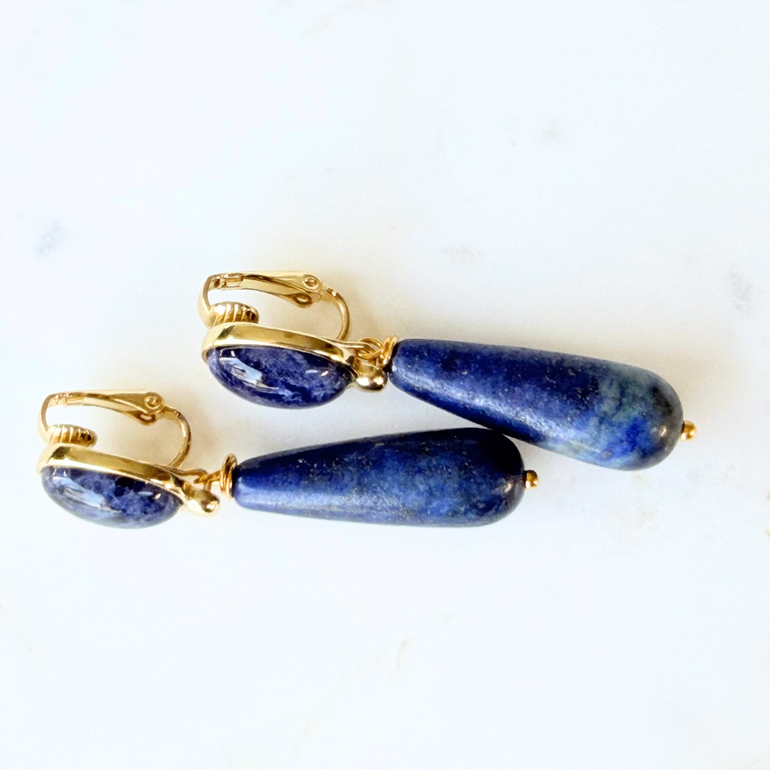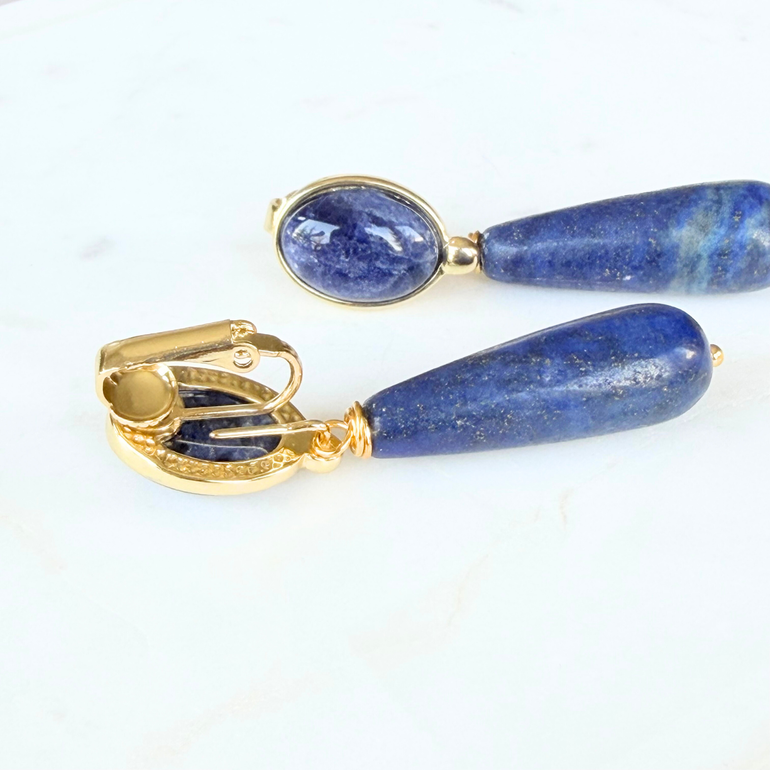 Clip-Ohrringe ÉLISE mit Sodalith und Lapislazuli Tropfen