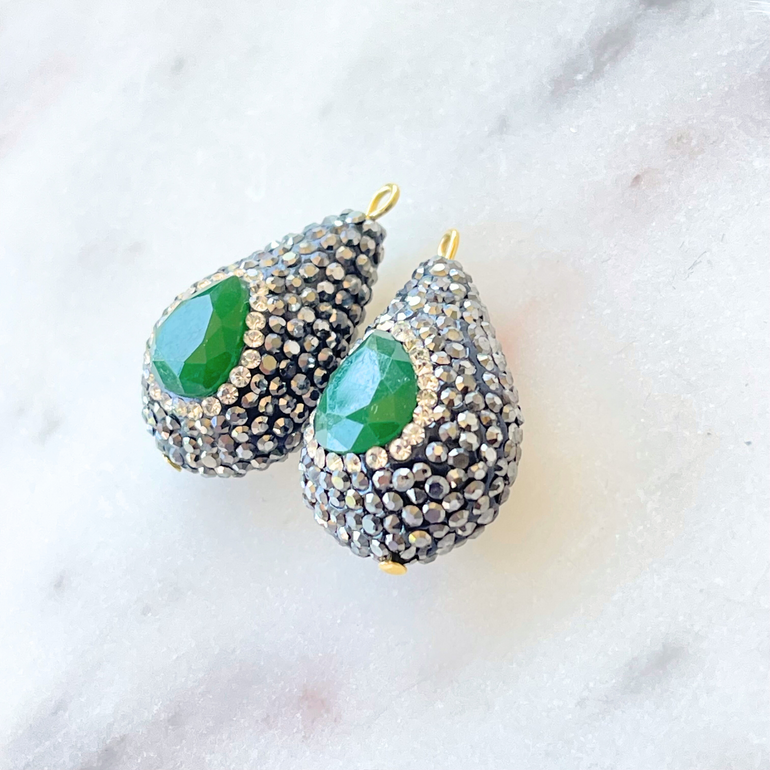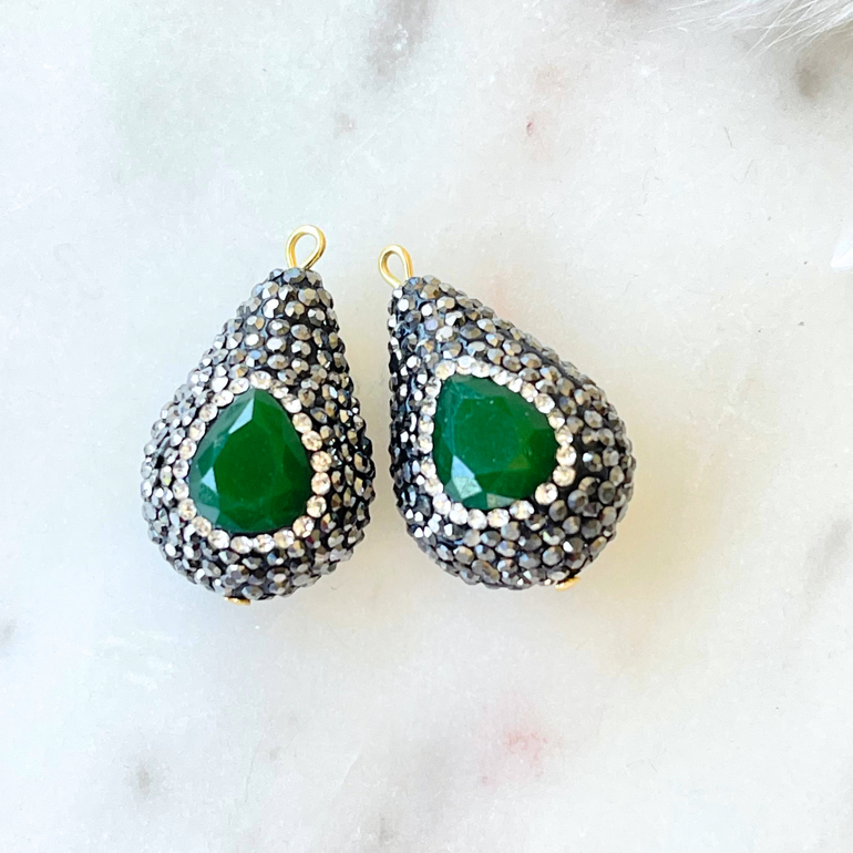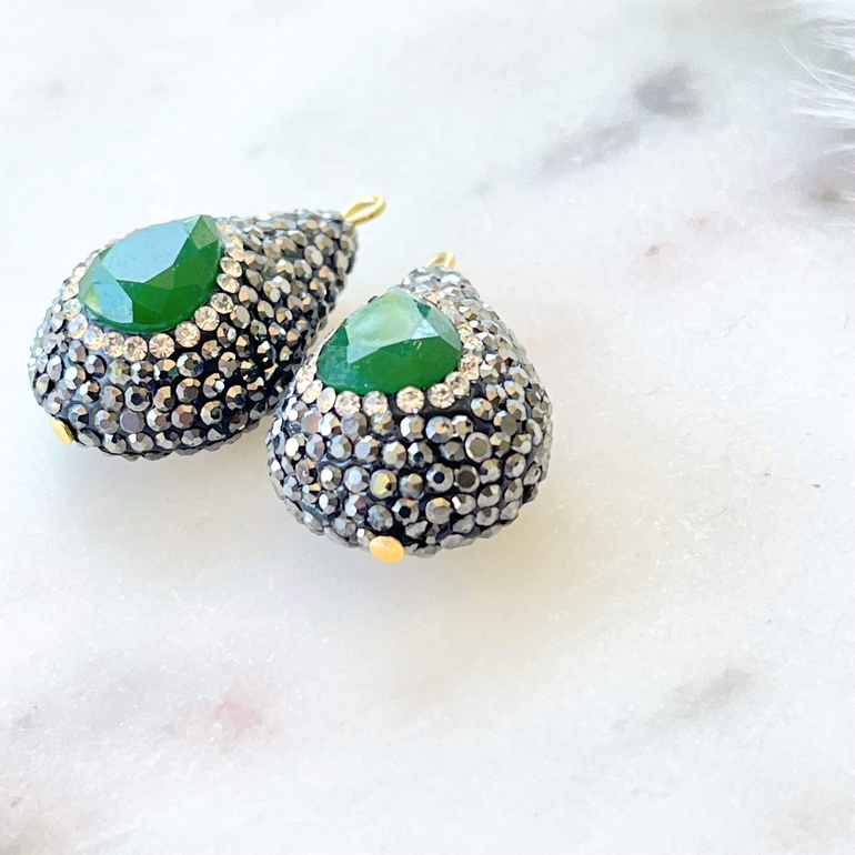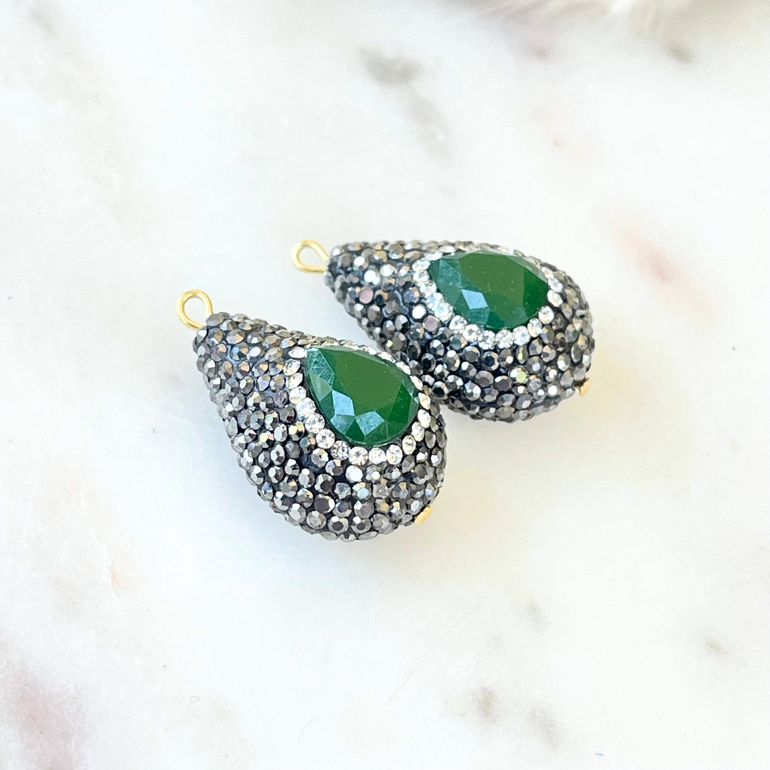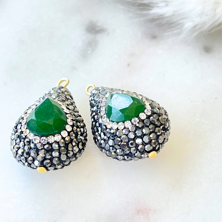 Ein stilvoller Anhänger, der durch seine raffinierte Kombination von grünem Schmuckstein und glitzernden Markasiten besticht. Die Tropfenform verleiht eine klassische Eleganz, während die funkelnde Fassung für ein luxuriöses Finish sorgt.
