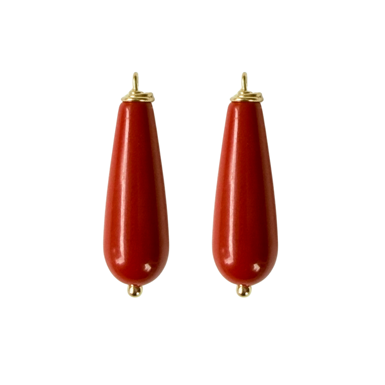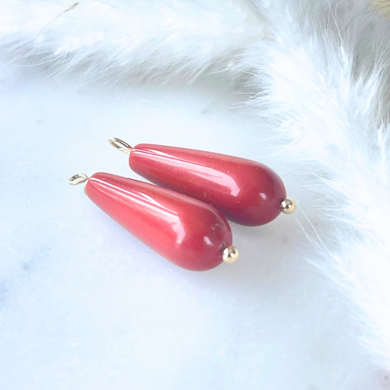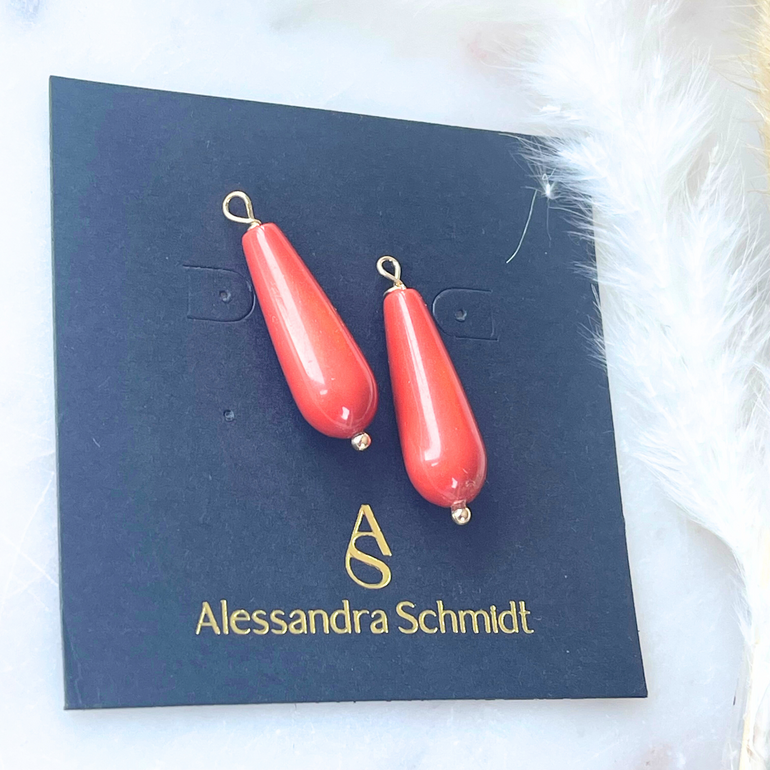 Dieser Tropfen-Anhänger aus Korallpaste in einem warmen, rötlichen Ton bringt sofort Lebendigkeit in Deinen Look. Ob zu weißen Leinenblusen, zu fließenden Sommerkleidern oder als Farbakzent zu eleganten schwarzen Outfits – er verleiht Deinen Ohrringen eine besondere Note, die natürlich und dennoch raffiniert wirkt.