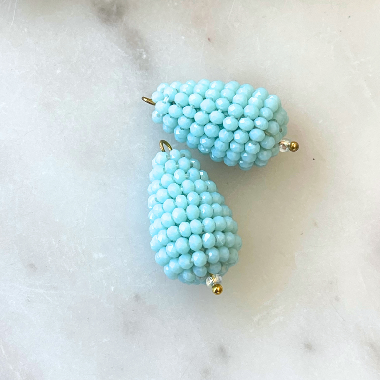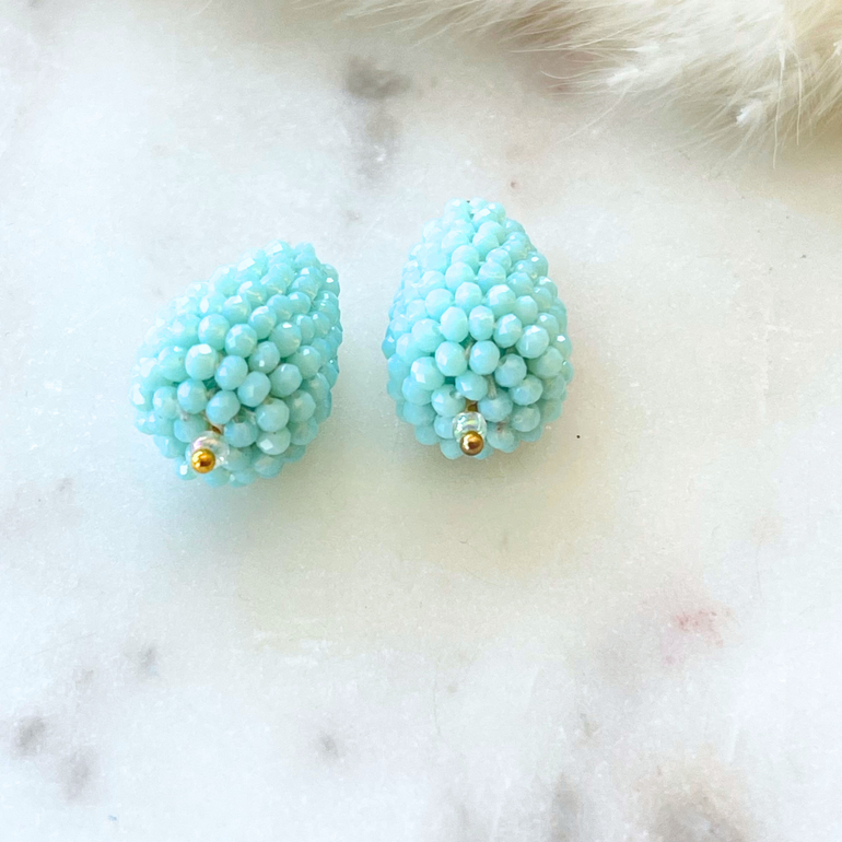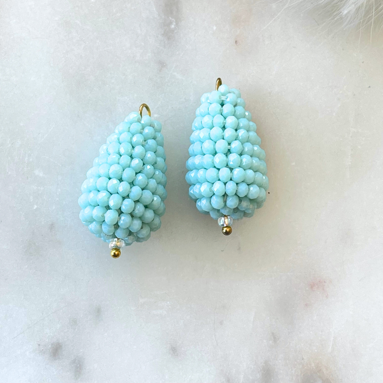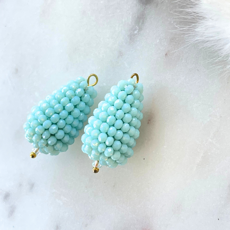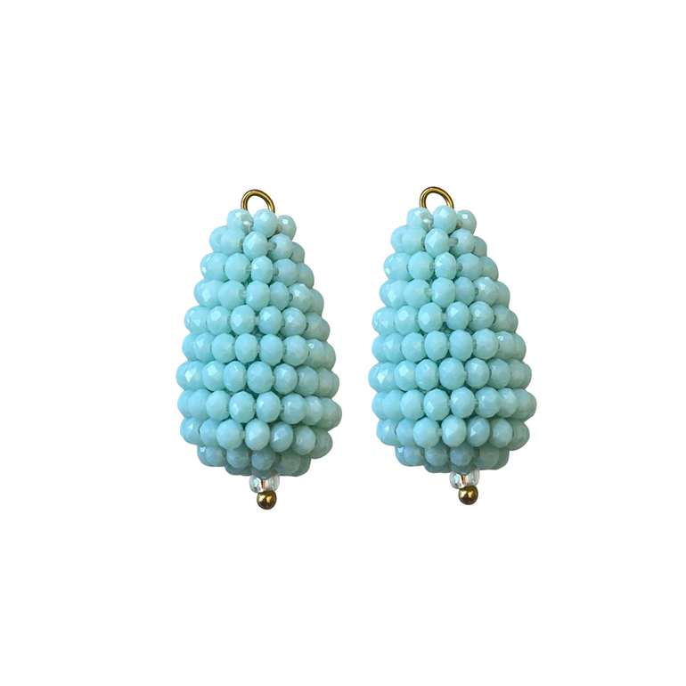 Dieser tropfenförmige Anhänger ist mit zahlreichen kleinen, funkelnden Kristallen in elegantem Türkis handgearbeitet. Die sanfte Farbgebung verleiht jedem Look einen frischen, doch zeitlosen Akzent. Durch seine 3 cm Länge ist er vielseitig tragbar und bietet die perfekte Balance zwischen dezenter Eleganz und moderner Ausstrahlung.