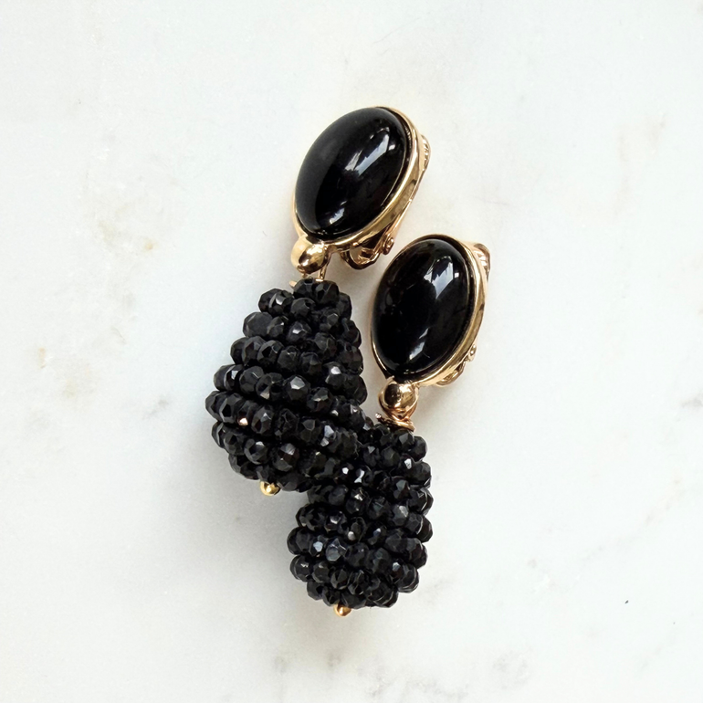 Der tiefschwarze Achat verleiht dem Ohrring Stärke und Raffinesse, während der abnehmbare CHARLOTTE-Anhänger mit seiner facettierten Oberfläche einen ausdrucksstarken Akzent setzt.