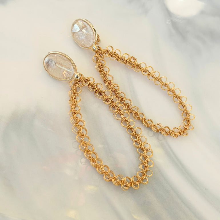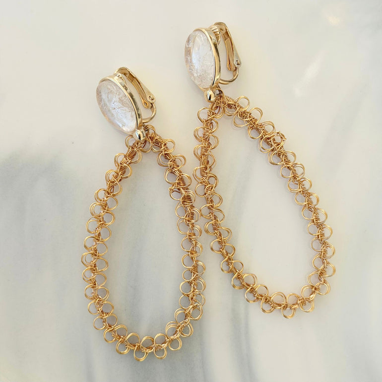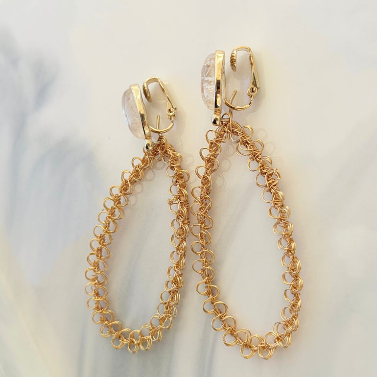XXL Clip Ohrringe Estelle mit Bergkristall und ultraleichtem filigranem Anhänger
